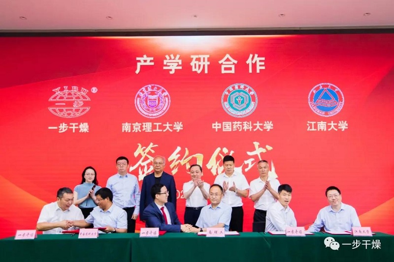 ★ 接下來(lái)舉行了本次儀式的第二項(xiàng)議程:常州一步干燥設(shè)備有限公司與南京理工大學(xué)、中國(guó)藥科大學(xué),江南大學(xué)進(jìn)行產(chǎn)學(xué)研合作簽約。天寧區(qū)政協(xié)主席魏敏先生、鄭陸鎮(zhèn)黨委書(shū)記李漢田先生、鄭陸鎮(zhèn)鎮(zhèn)長(zhǎng)郁國(guó)興先生、中國(guó)制藥裝備行業(yè)協(xié)會(huì)理事長(zhǎng)高川先生、中國(guó)干燥行業(yè)協(xié)會(huì)理事長(zhǎng)史勇春先生、天寧區(qū)工商聯(lián)黨組書(shū)記韋偉女士也上臺(tái)見(jiàn)證了這樣一個(gè)激動(dòng)人心的時(shí)刻,全場(chǎng)嘉賓用熱烈的掌聲預(yù)祝項(xiàng)目合作取得圓滿(mǎn)成功,期待雙方的合作將會(huì)全面實(shí)現(xiàn)雙贏的結(jié)果。