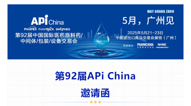2025 年 5 月 21-23 日,第 92 屆中國國際醫藥原料藥 / 中間體 / 包裝 / 設備交易會(API China)將在廣州?中國進出口商品交易會…